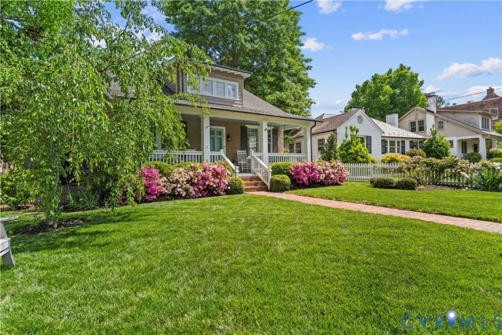 Stunning, fully renovated and expanded bungalow offering a thoughtfully designed floorplan. Located at 405 Saint Christophers Road, this home underwent a breathtaking renovation completed in 2023, seamlessly blending classic charm with modern amenities. Climbing rose bushes adorn a picturesque white picket fence. Lush azaleas and an inviting front porch create a warm and elegant first impression. Beautiful hardwood floors expand throughout this light-filled home. The spacious living room opens effortlessly to a formal dining room, ideal for both everyday living and entertaining. Just beyond, a boutique wet bar leads into a generous family room anchored by a gas fireplace, with access to the side porch and patio. The charming eat-in kitchen features high-end appliances, marble countertops, and a large pantry. A main-level bedroom or office with Murphy bed, and a full bath offer flexibility for guests or work-from-home needs. Upstairs, the primary suite serves as a private retreat with two walk-in closets and a luxurious en suite bath. Two additional bedrooms, each with en suite baths and ample closet space, along with a loft area and laundry, complete the second level. The outdoor spaces are equally impressive, featuring a private, fenced yard with mature landscaping, patio, irrigation, sports pad, and a detached two-car garage (2019). Ideally located near Country Club of Virginia, St. Christopher's School, St. Catherine's School, St. Bridget Catholic School, and the shops and dining of Libbie and Grove. Notables: Main level Furnace/HVAC (Trane) '23, Second level Furnace/HVAC '21, crawlspace sump pump with battery back-up, wet bar with built-in panel fridge & freezer with ice maker, exterior trim and fence painted '26 and more!